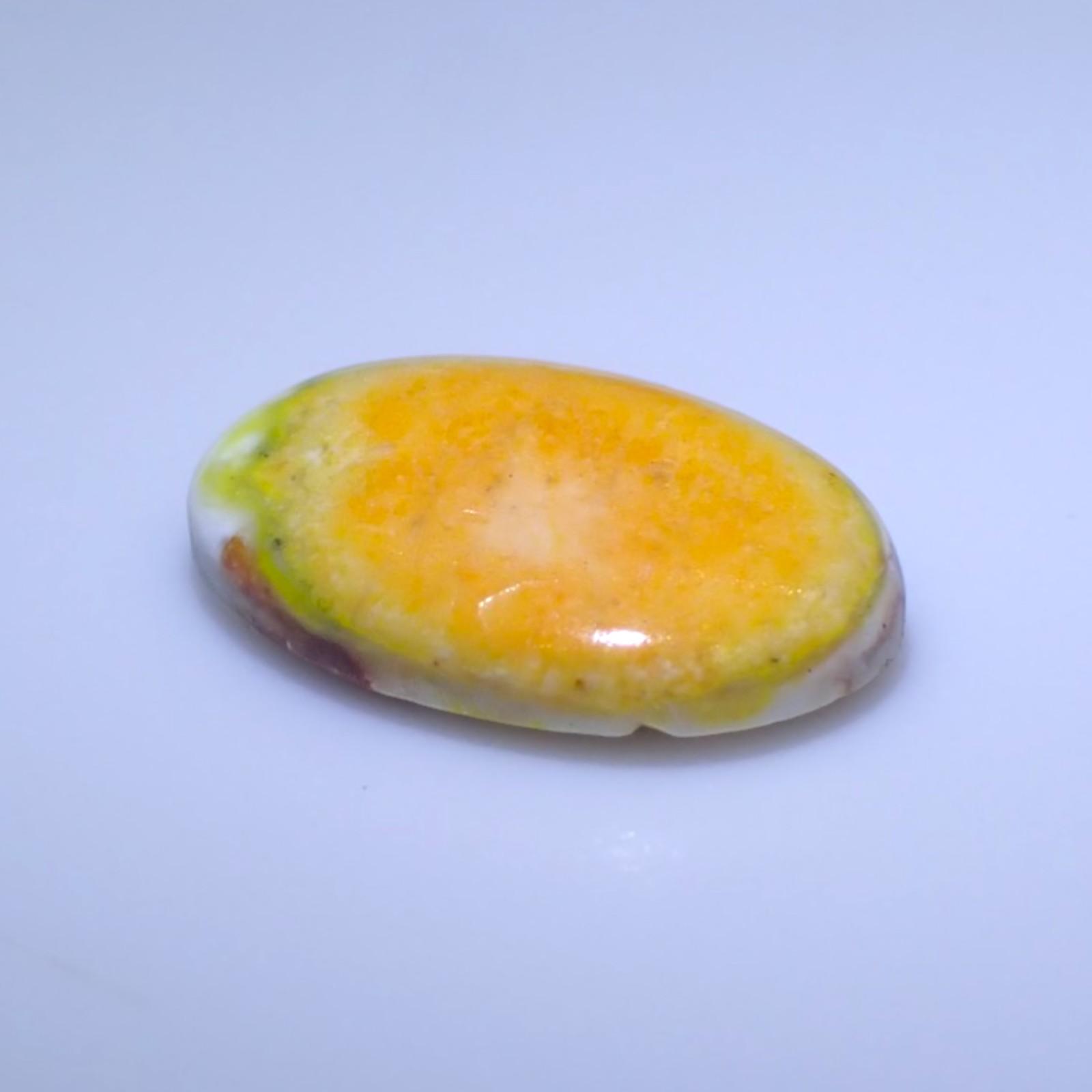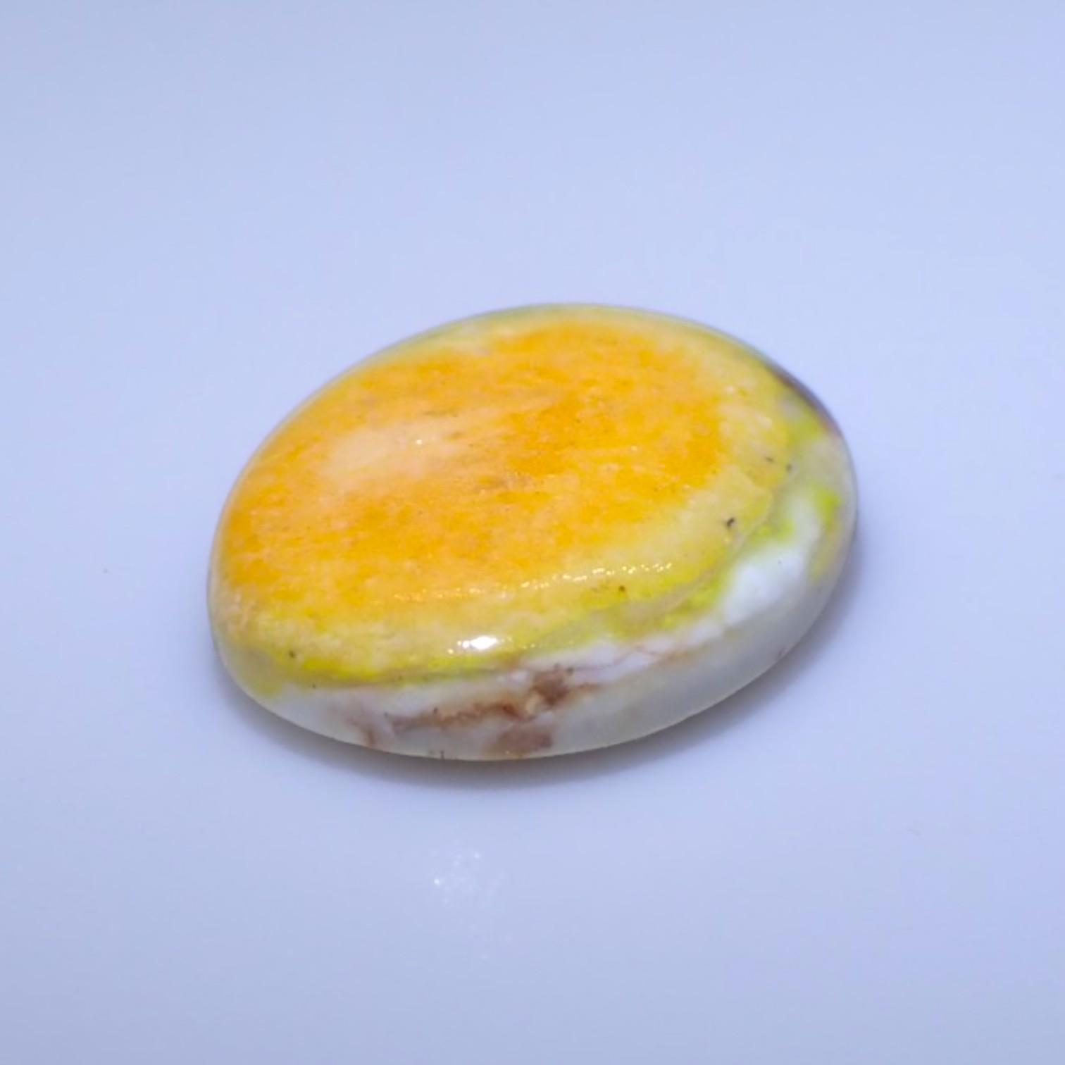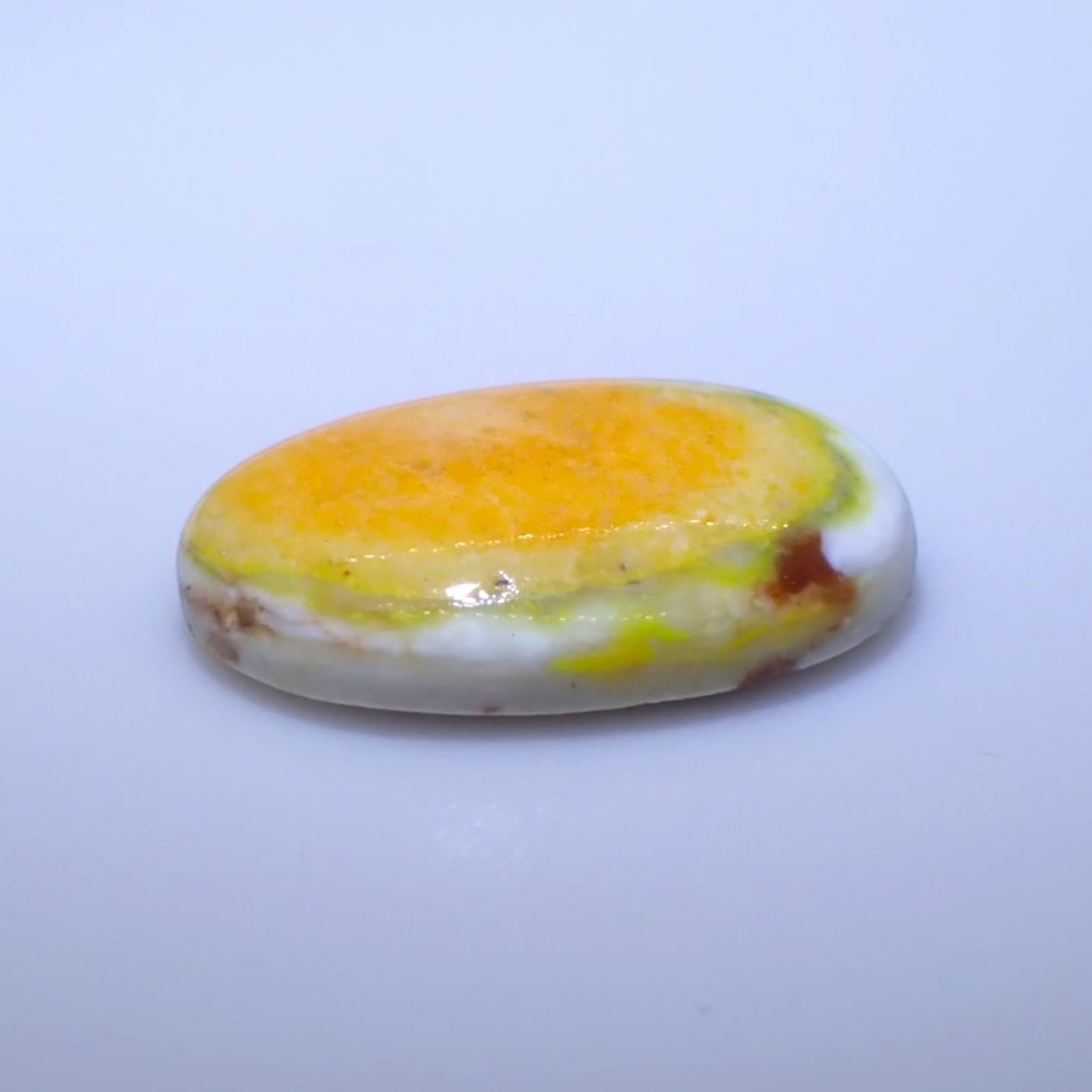 One of its most identifying features is the intensity of its color, which is remarkably stable despite the light-sensitivity usually associated with its arsenic-sulfide inclusions. Unlike Mexican Fire Opal, which is colored by iron, Forcherite’s “neon” orange is driven by the presence of these rare sulfides. It is typically translucent to opaque, and when polished, it displays a deep, glowing warmth. As it is an opal, it contains water within its structure, meaning it should be kept away from extreme heat to prevent the loss of its vibrant, “juicy” appearance.
