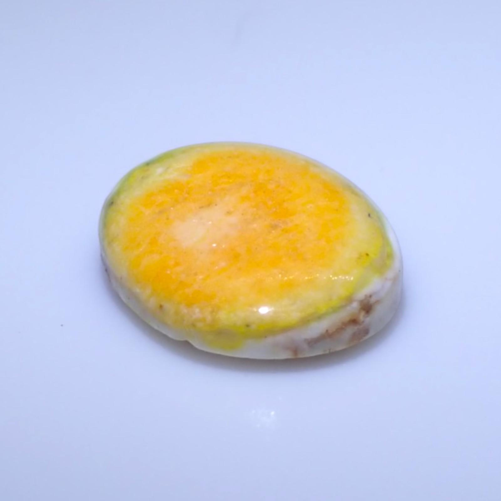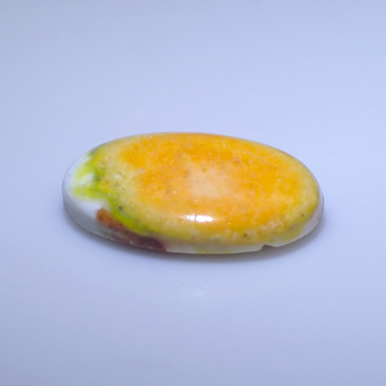 Description: Forcherite is a variety of common opal (amorphous hydrated silica) that is colored by fine, dispersed inclusions of Realgar and Orpiment. It sits at a 5.5 to 6.5 on the Mohs scale, typical for high-quality common opal. It is characterized by its vitreous to waxy luster and its striking yellow, orange, and reddish-orange body color.