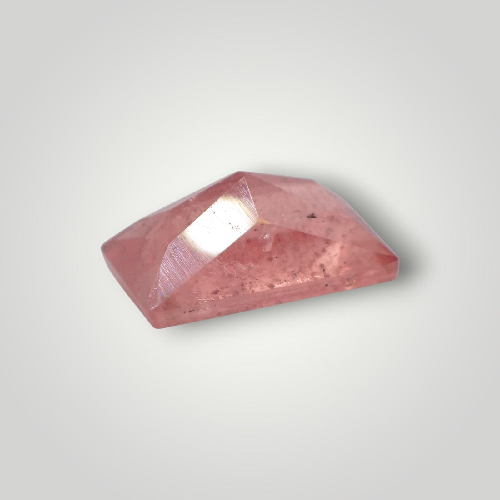 Description: Rhodochrosite is a manganese carbonate that crystallizes in the trigonal system. It sits at a 3.5 to 4 on the Mohs scale, making it a delicate gemstone that requires an expert hand to facet and protect. It is characterized by its vitreous luster and its unmistakable “rose-to-cherry” color palette.