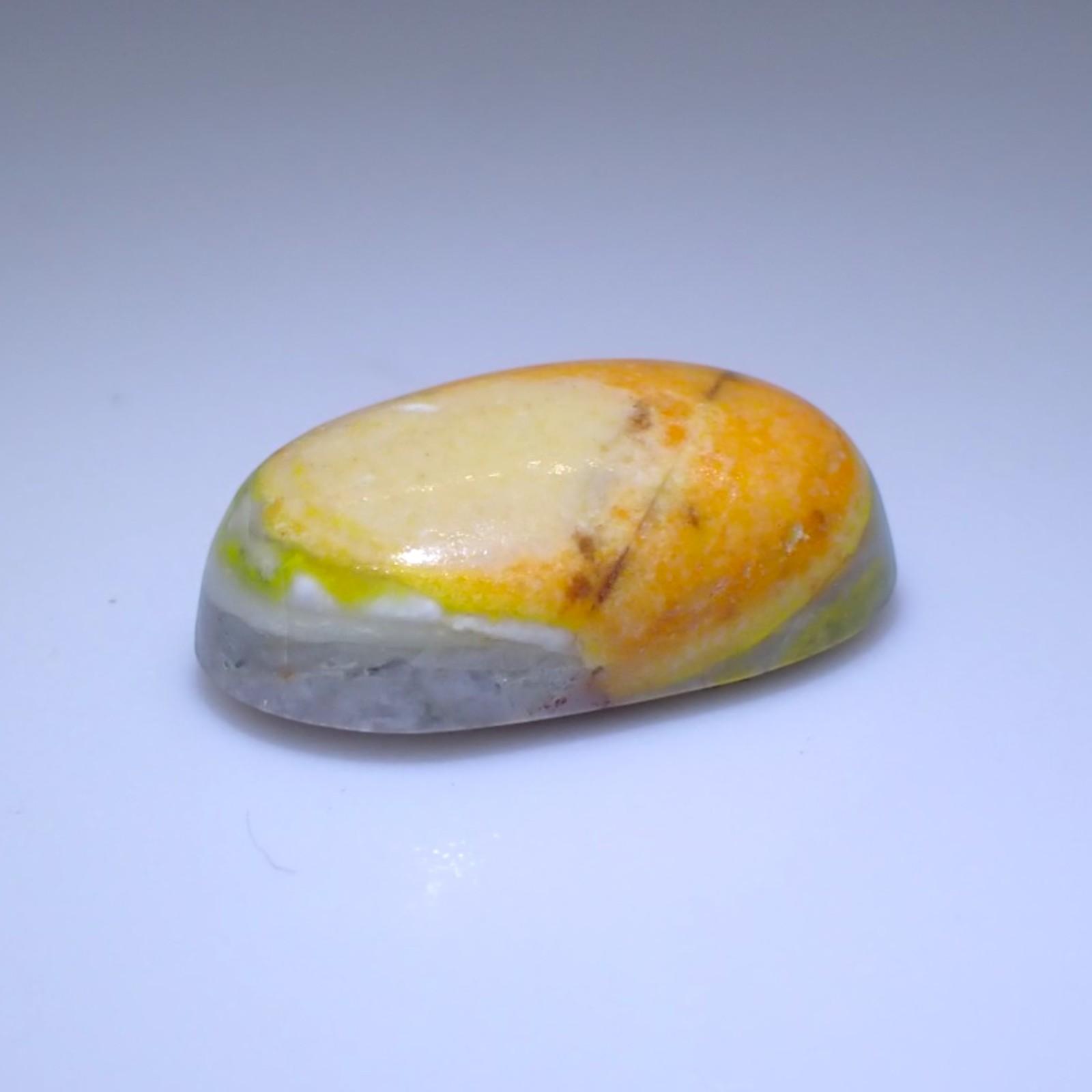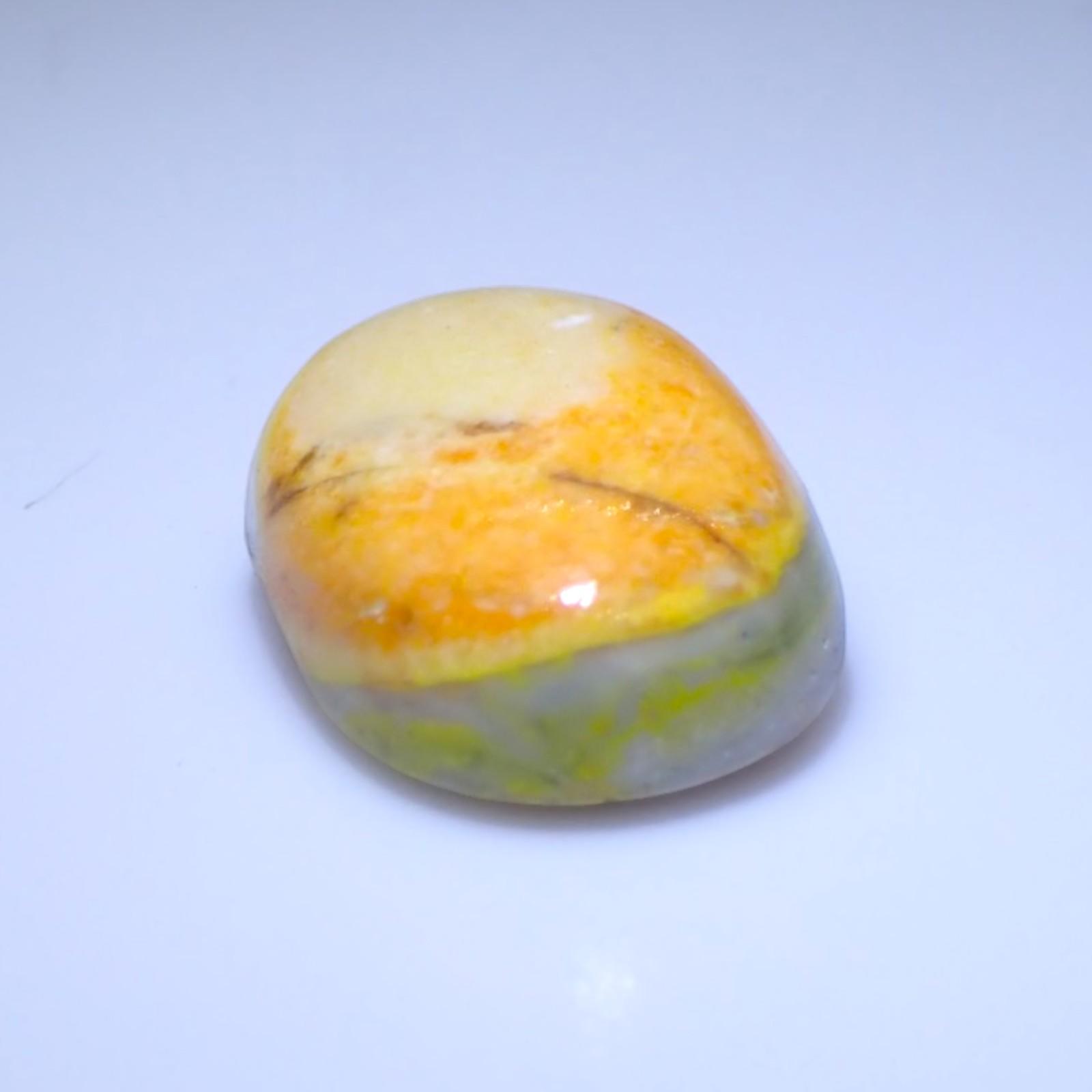 One of its most identifying features is the intensity of its color, which is remarkably stable despite the light-sensitivity usually associated with its arsenic-sulfide inclusions. Unlike Mexican Fire Opal, which is colored by iron, Forcherite’s “neon” orange is driven by the presence of these rare sulfides. It is typically translucent to opaque, and when polished, it displays a deep, glowing warmth. As it is an opal, it contains water within its structure, meaning it should be kept away from extreme heat to prevent the loss of its vibrant, “juicy” appearance.