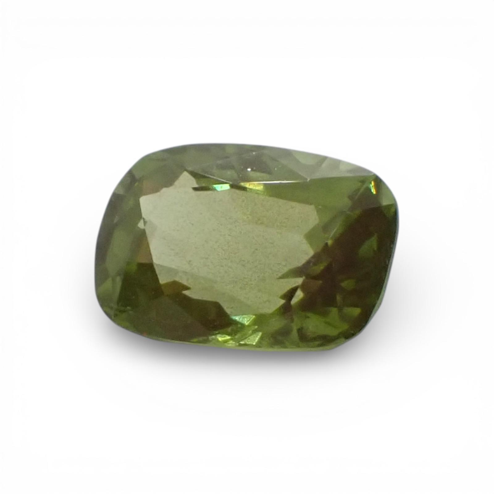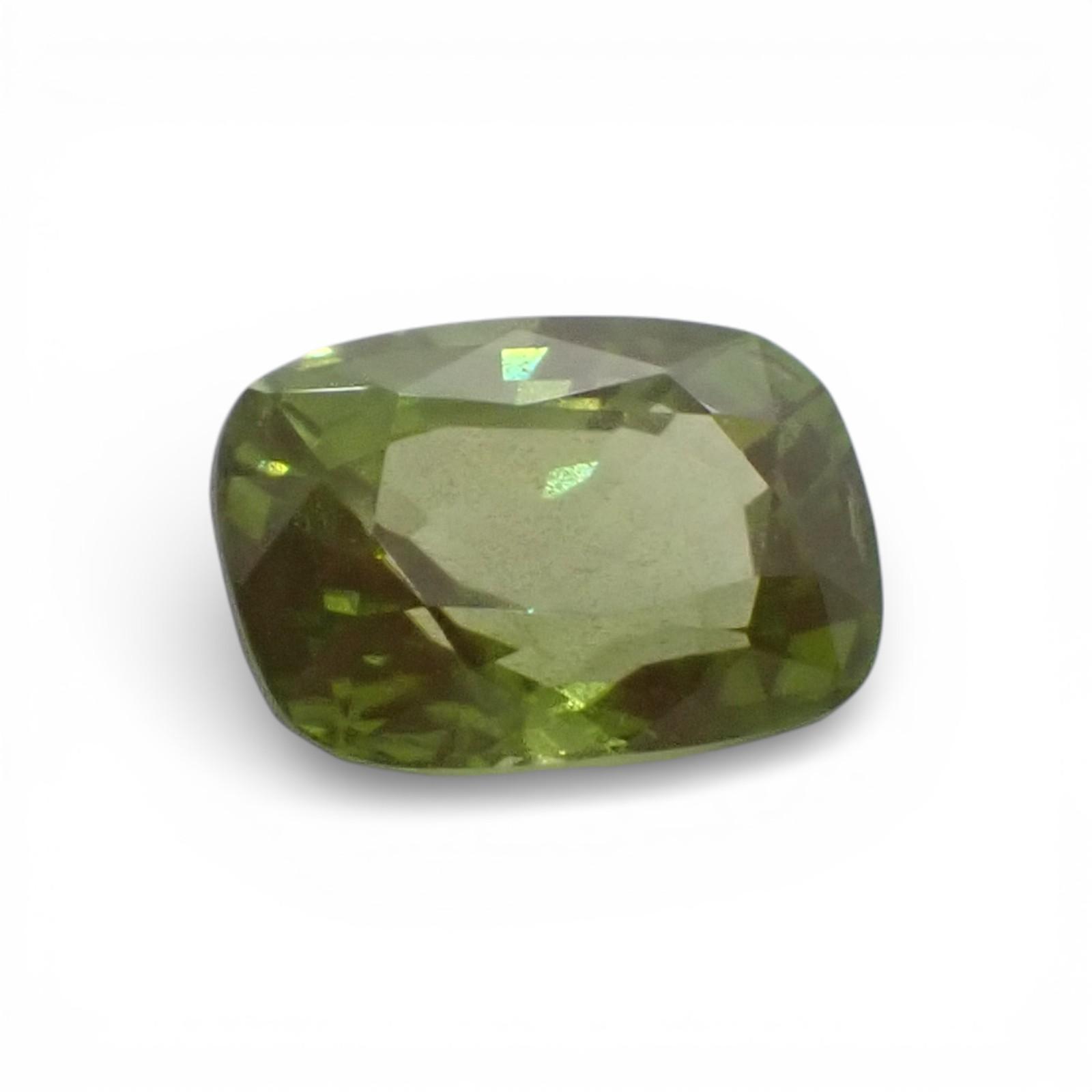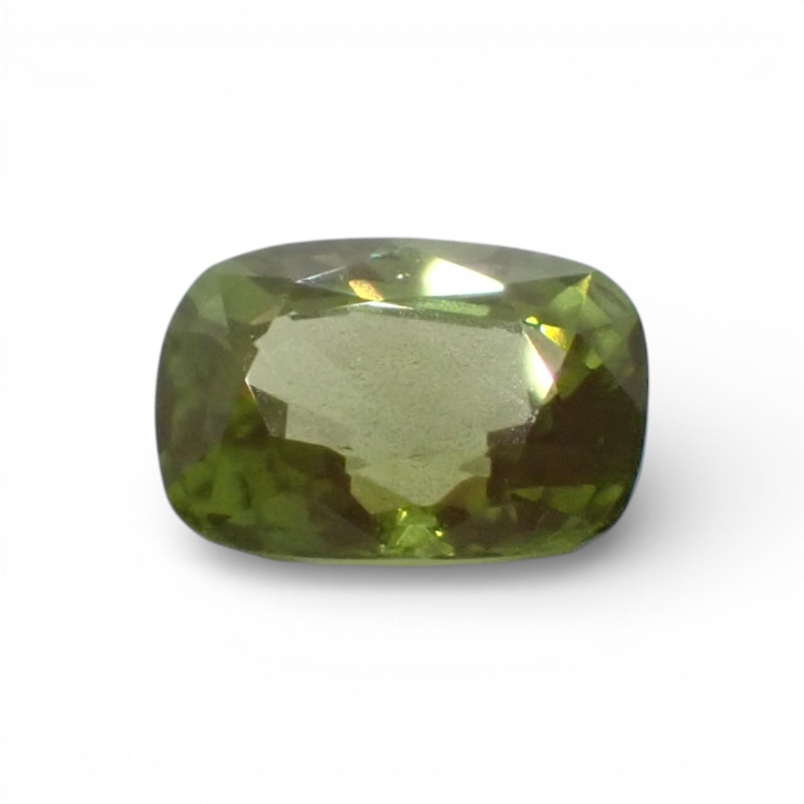 One of its most identifying traits is its extreme birefringence ($n \approx 1.63$ to $1.69$); when looking through the table of a faceted stone, the “doubling” of the back facets is often visible to the naked eye—a trait that gives Kashmir Peridot its characteristic “lively” and “sparkling” appearance. It has a specific gravity ($SG \approx 3.34$), making it feel notably denser than Quartz. Because it is a product of high-temperature geological activity, it is often found in association with Magnetite, Chromite, and Serpentine. When I select a piece for the collection, I look for “even” color distribution and the absence of “lily pad” (cleavage) inclusions, as these highlight the sophisticated, three-dimensional geometry that makes Kashmir Peridot a standout for the systematic specialist.