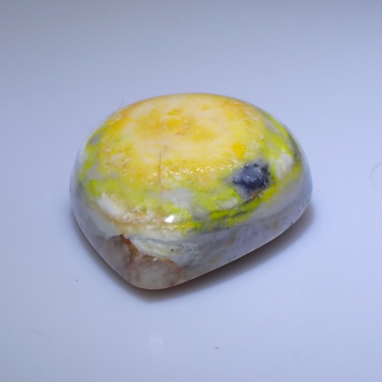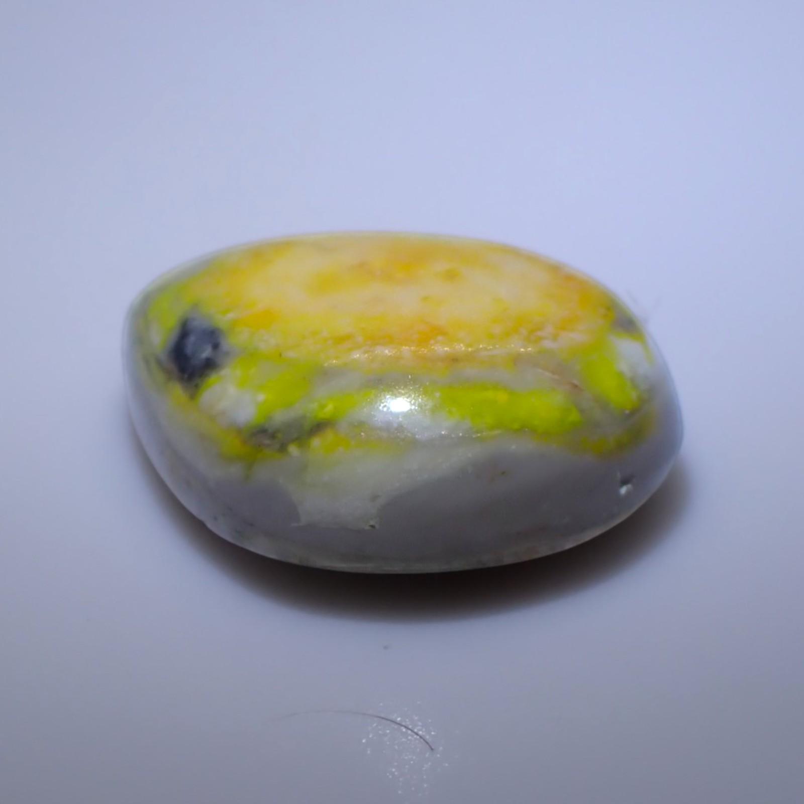 One of its most identifying features is the intensity of its color, which is remarkably stable despite the light-sensitivity usually associated with its arsenic-sulfide inclusions. Unlike Mexican Fire Opal, which is colored by iron, Forcherite’s “neon” orange is driven by the presence of these rare sulfides. It is typically translucent to opaque, and when polished, it displays a deep, glowing warmth. As it is an opal, it contains water within its structure, meaning it should be kept away from extreme heat to prevent the loss of its vibrant, “juicy” appearance.