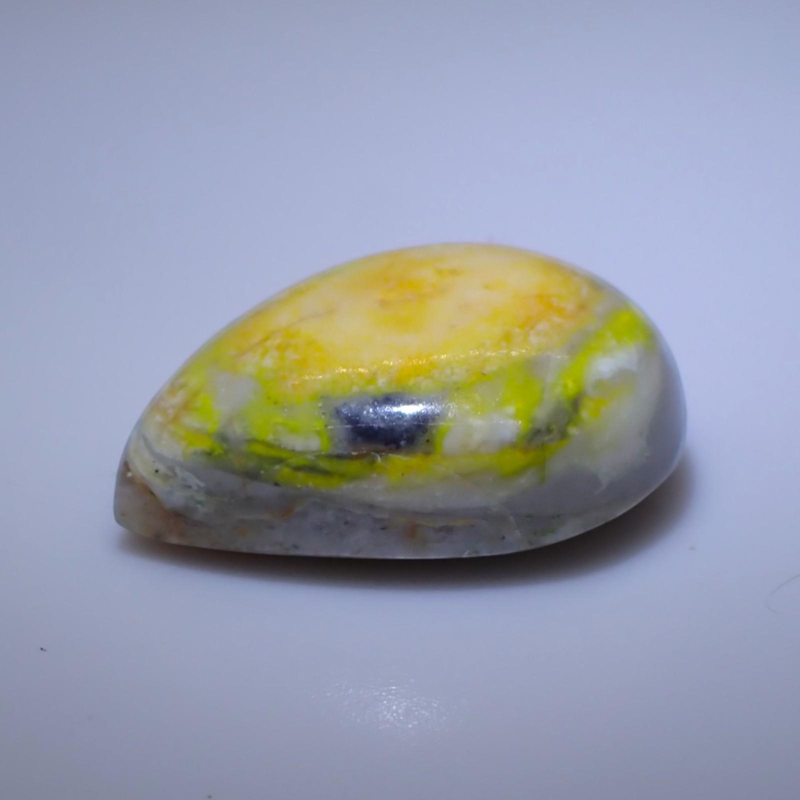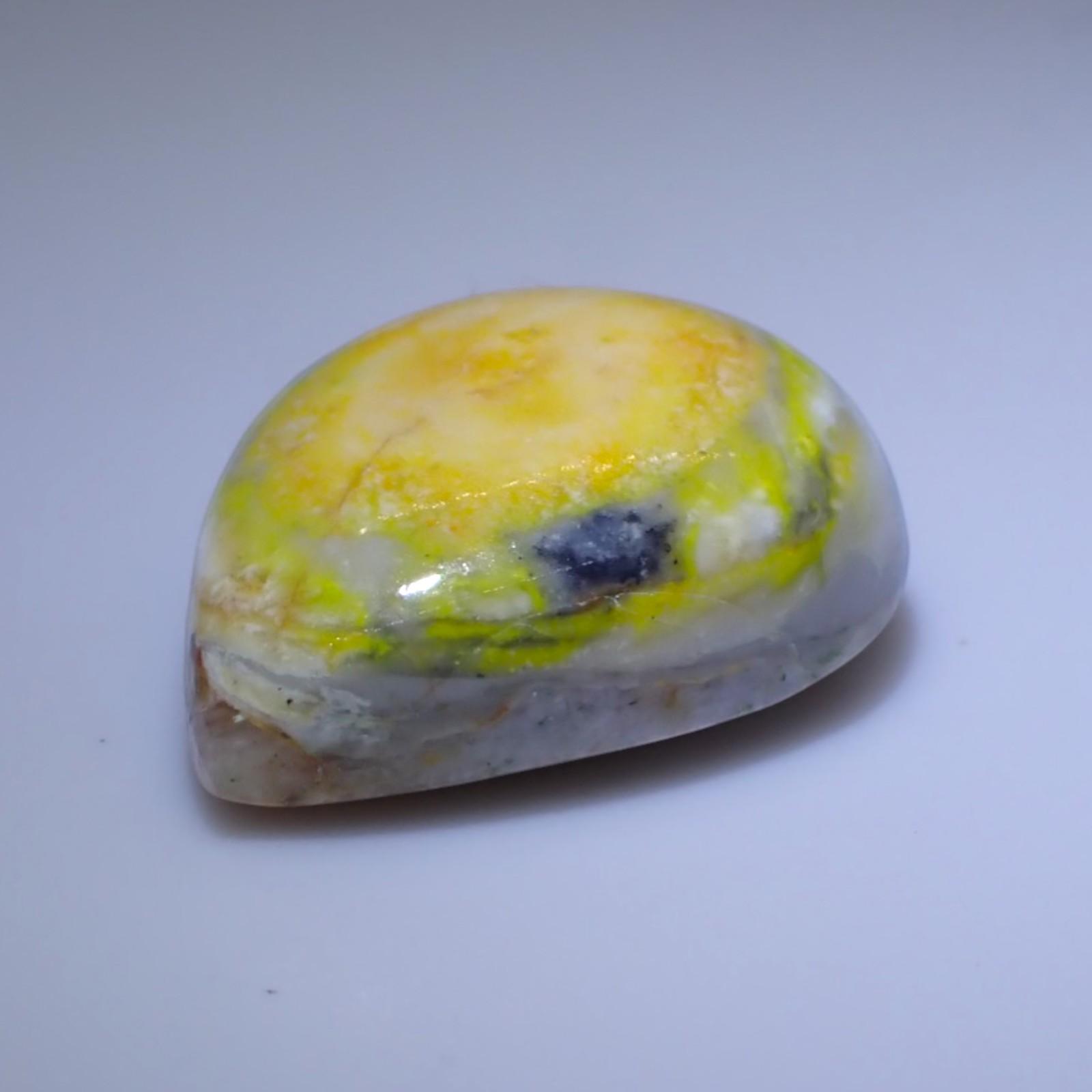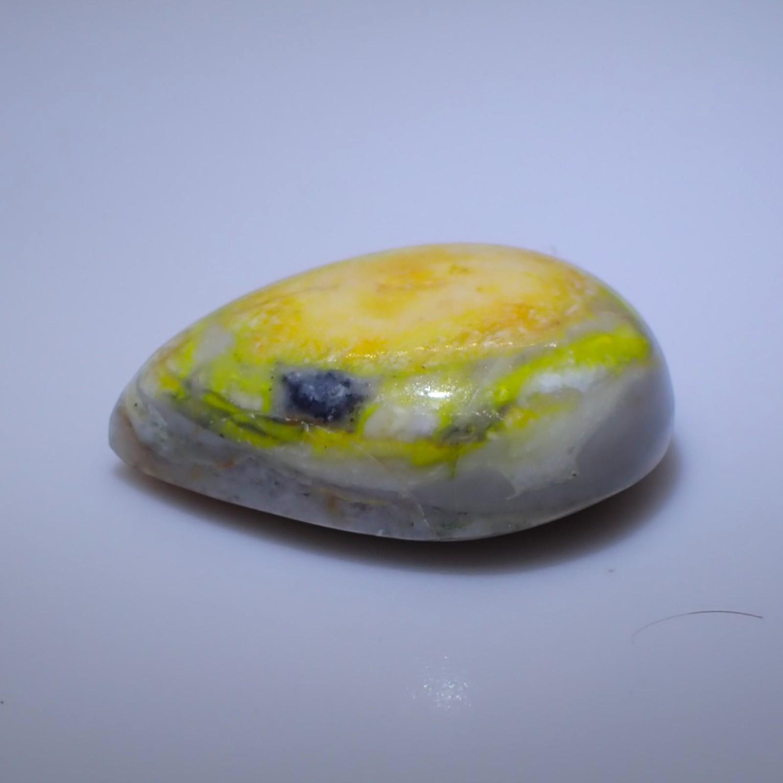 Description: Forcherite is a variety of common opal (amorphous hydrated silica) that is colored by fine, dispersed inclusions of Realgar and Orpiment. It sits at a 5.5 to 6.5 on the Mohs scale, typical for high-quality common opal. It is characterized by its vitreous to waxy luster and its striking yellow, orange, and reddish-orange body color.